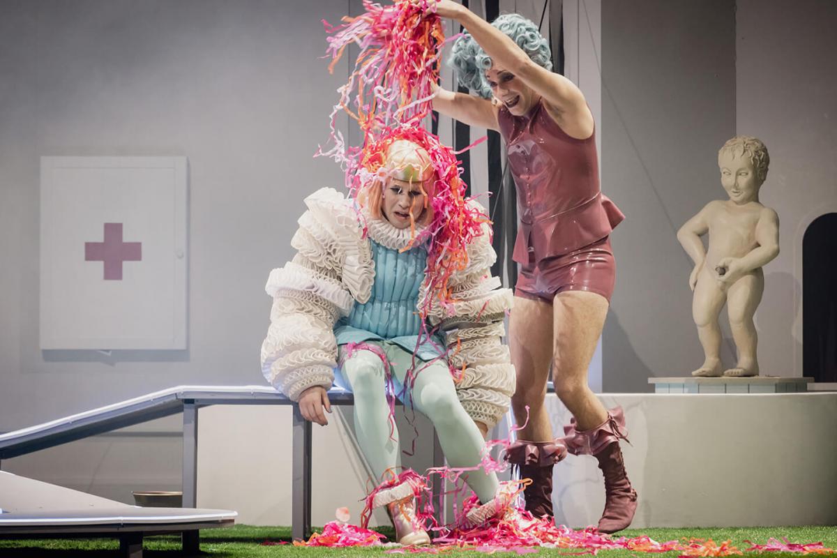 Märchenoper über Sein und Schein und die Grundbausteine des Theaters an sich. Ein Märchen, ein Theaterabend, große Oper. Lautmalerisch, expressiv, dicht und knallig.